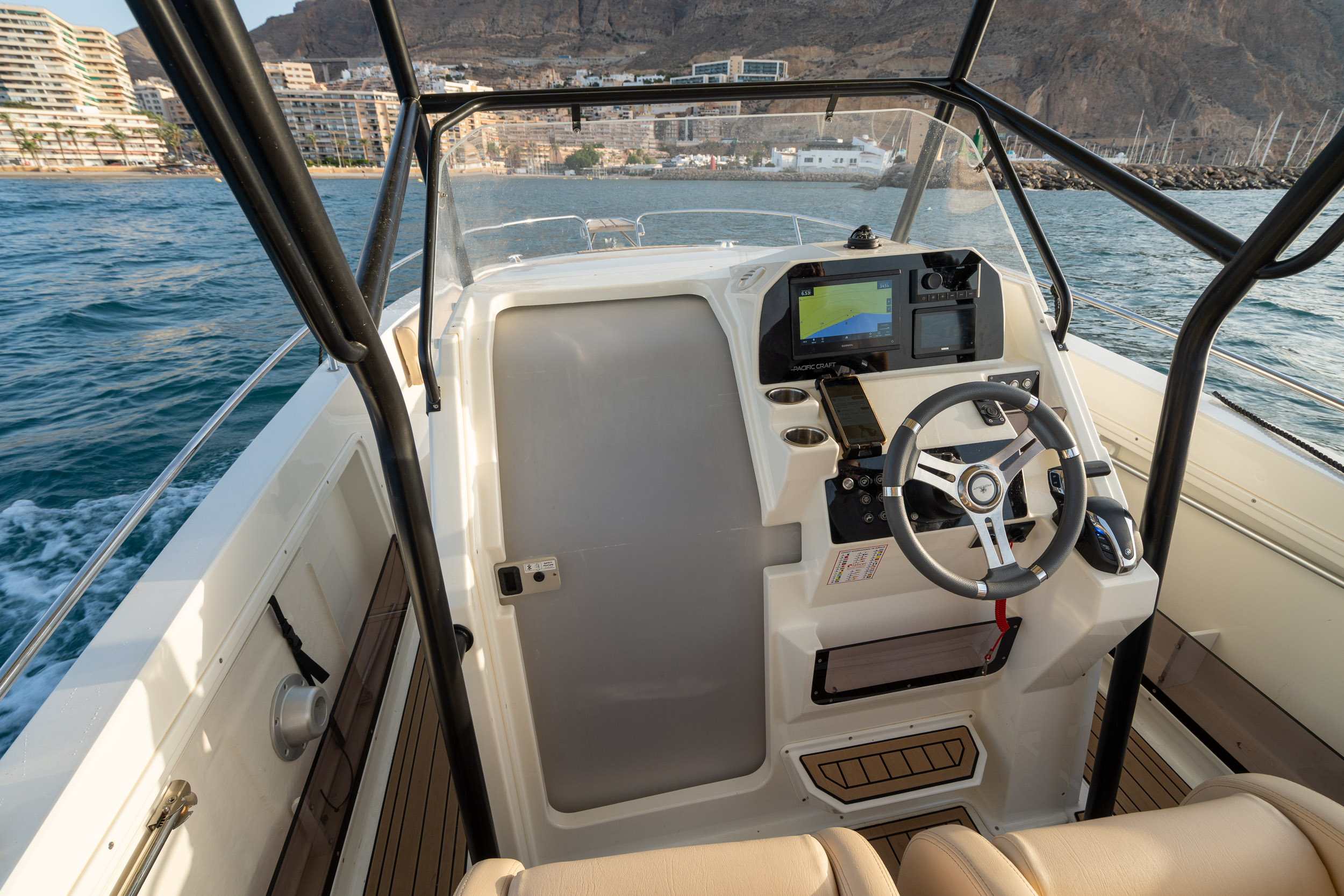Esta embarcación aporta la parte motora a nuestra flota, ofreciendo a los alumnos la oportunidad de practicar y formarse en la navegación a motor en condiciones reales. Ideal para maniobras, prácticas de seguridad y navegación costera, la Pacific Craft Open 750 complementa perfectamente nuestra oferta formativa.